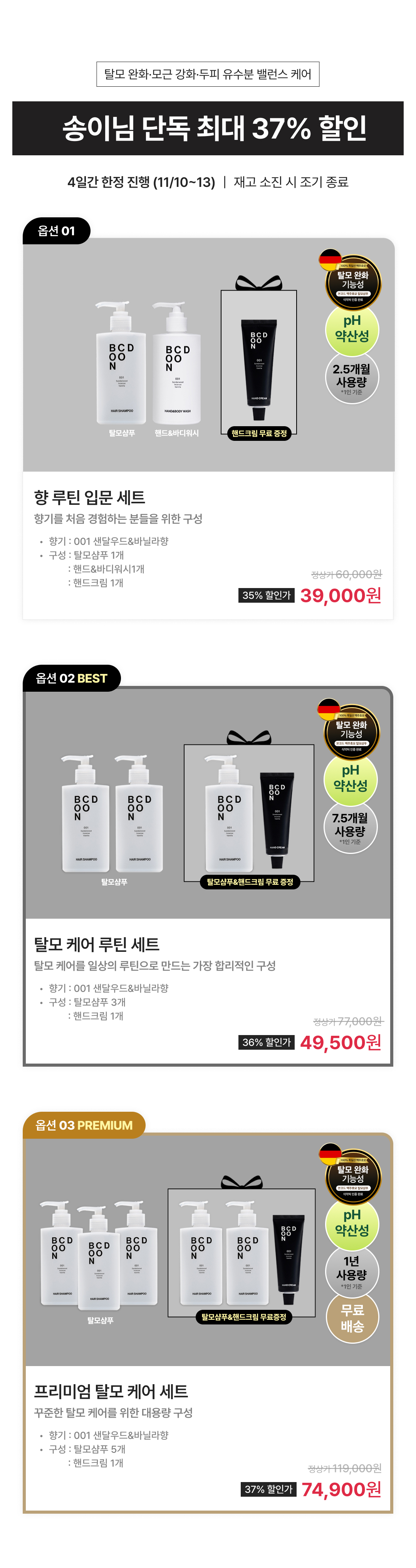 옵션 1 탈모샴푸 + 핸드&바디워시 001 39,000원